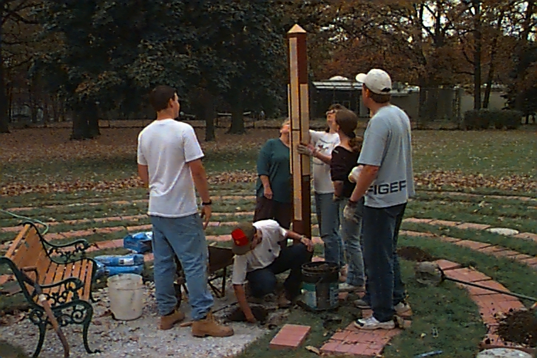 This project was built with volunteers from Boy Scout Troop 403, Parishioners from Mary Queen of Heaven, Helpers from the Teen Renew group, and others. Work was being coordinated by Neal Styka. Articles on the work have appeared in the Catholic Explorer and Addison and Elmhurst Press.